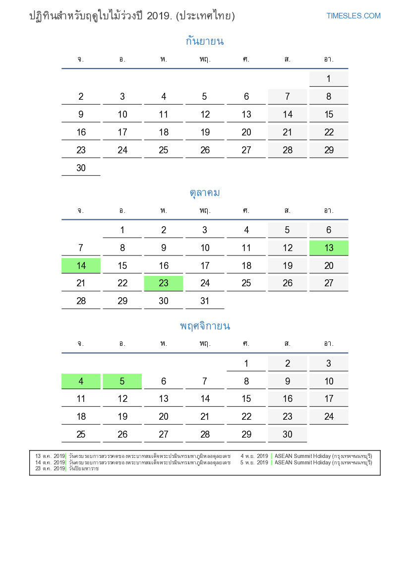 5 พ.ย. 2019 ASEAN Summit Holiday (กรุงเทพฯนนทบุรี)