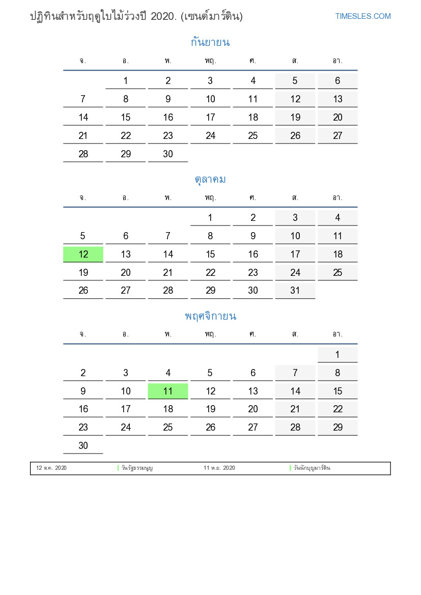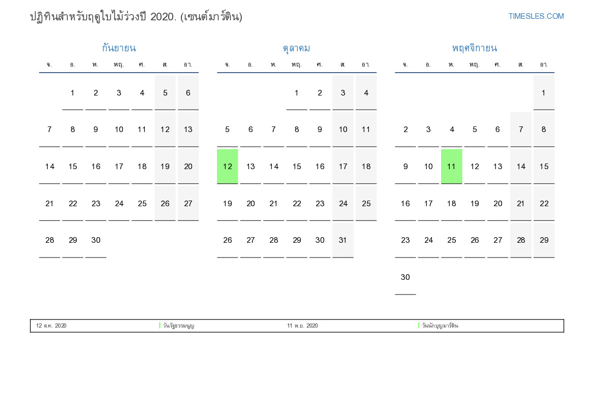 ดาวน์โหลดและพิมพ์ปฏิทิน PDF พร้อมวันหยุดและวันหยุดสุดสัปดาห์สำหรับฤดูใบไม้ร่วงปี 2020 สำหรับ Sint Maarten