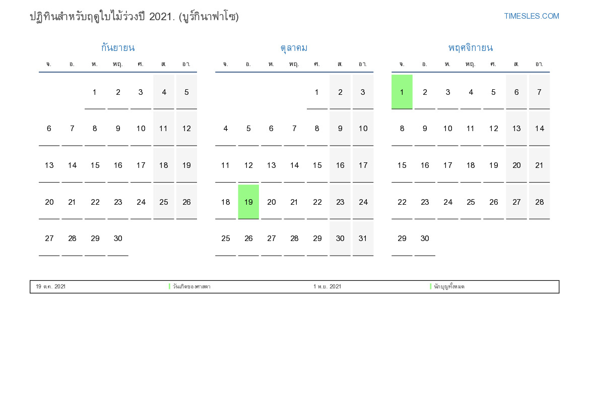 ปฏิทินสำหรับฤดูใบไม้ร่วงปี 2021 สำหรับบูร์กินาฟาโซ