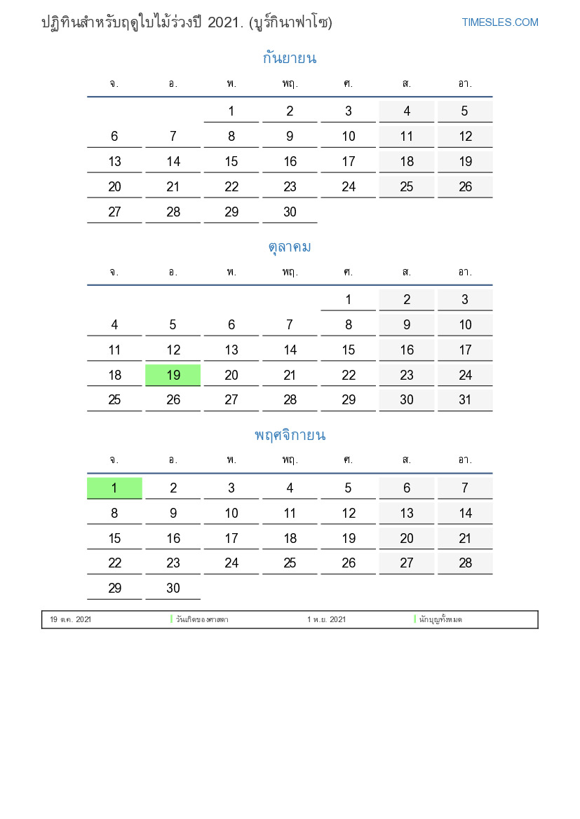 ปฏิทินวันหยุดและวันหยุดสุดสัปดาห์สำหรับฤดูใบไม้ร่วงปี 2021 สำหรับบูร์กินาฟาโซ