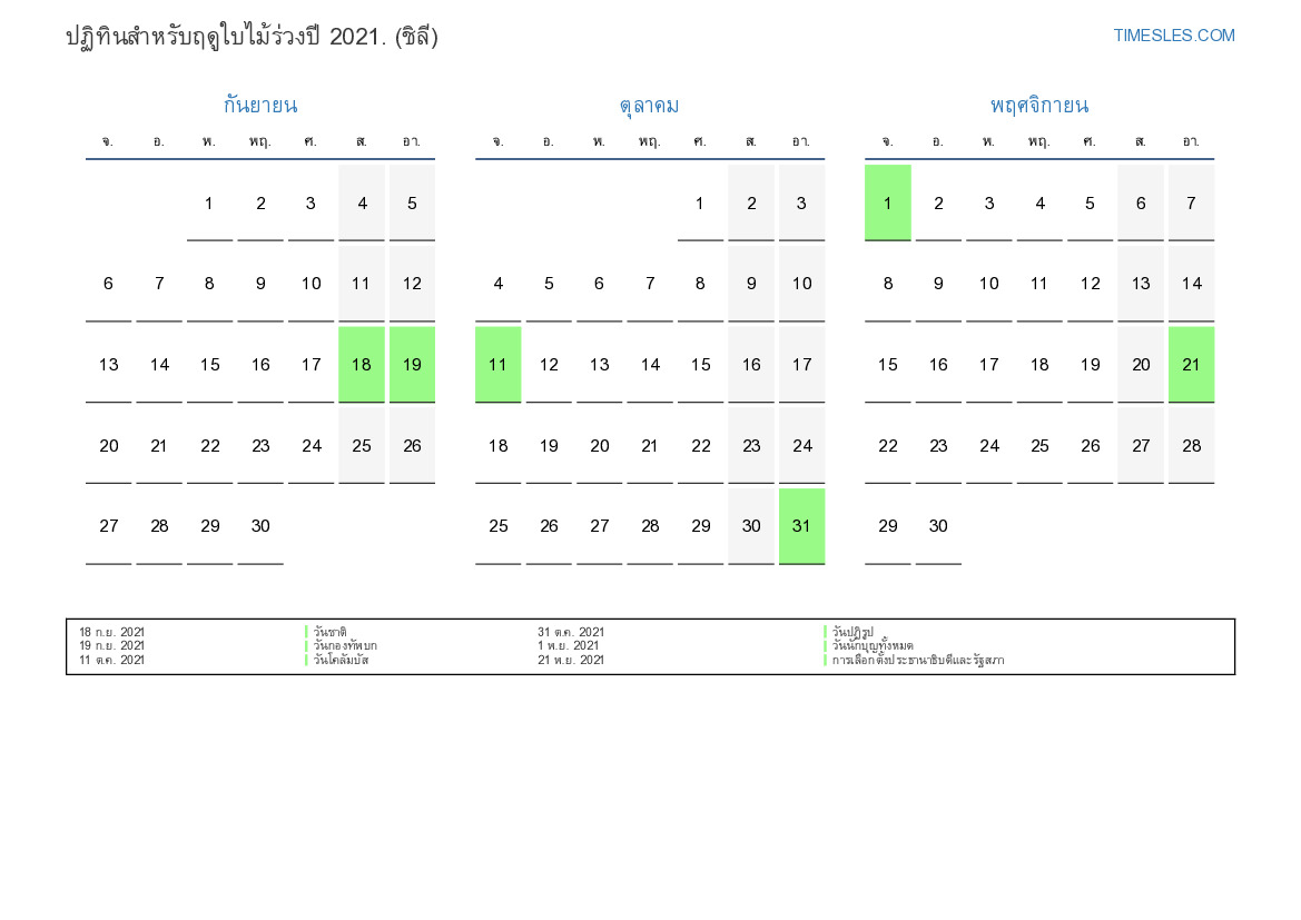 ปฏิทินสำหรับฤดูใบไม้ร่วงปี 2021 สำหรับชิลี
