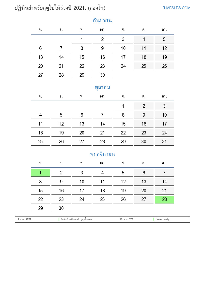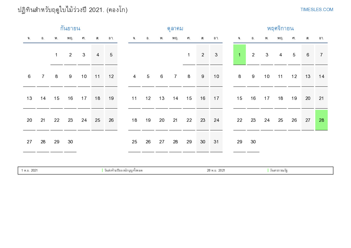 ปฏิทินสำหรับฤดูใบไม้ร่วงปี 2021 สำหรับคองโก