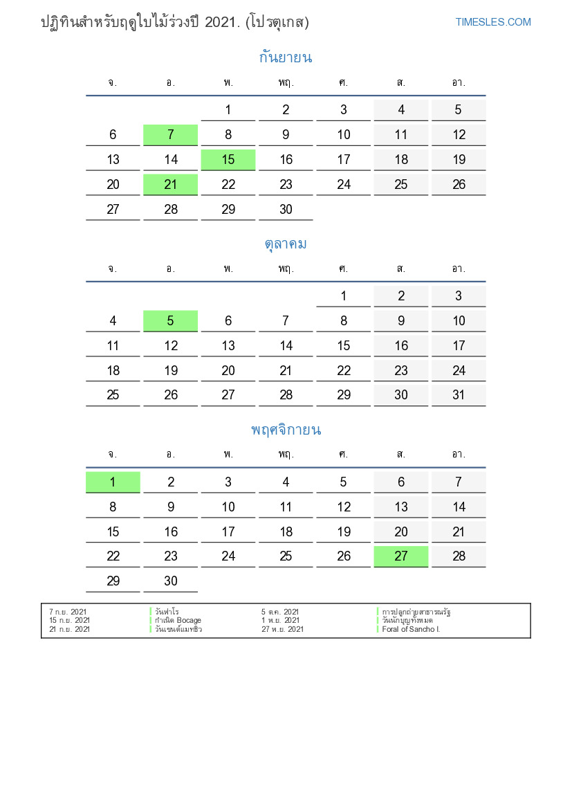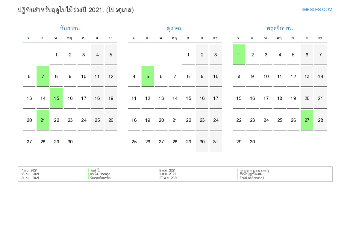 ปฏิทินสำหรับฤดูใบไม้ร่วงปี 2021 สำหรับโปรตุเกส