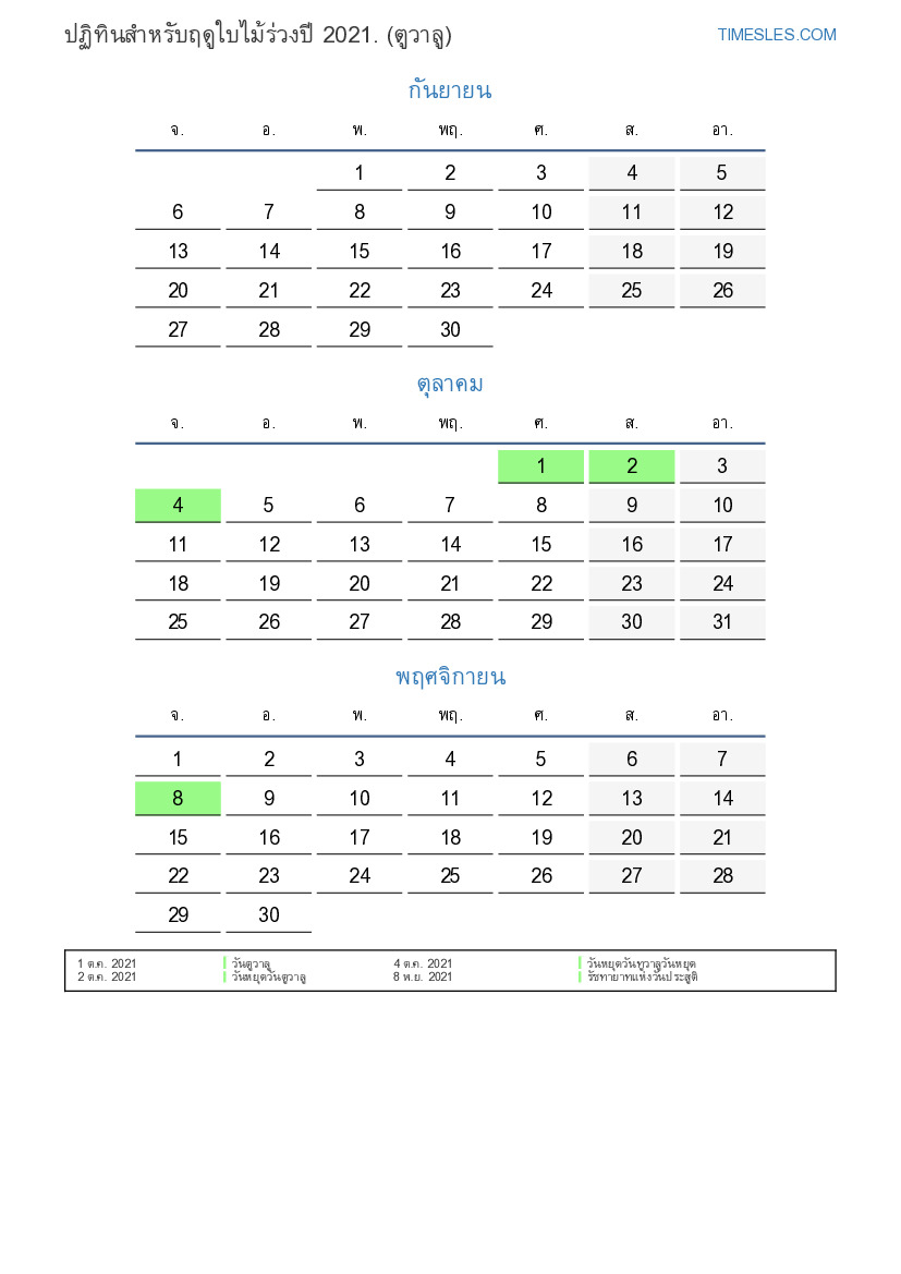 ปฏิทินสำหรับฤดูใบไม้ร่วงปี 2021 สำหรับตูวาลู