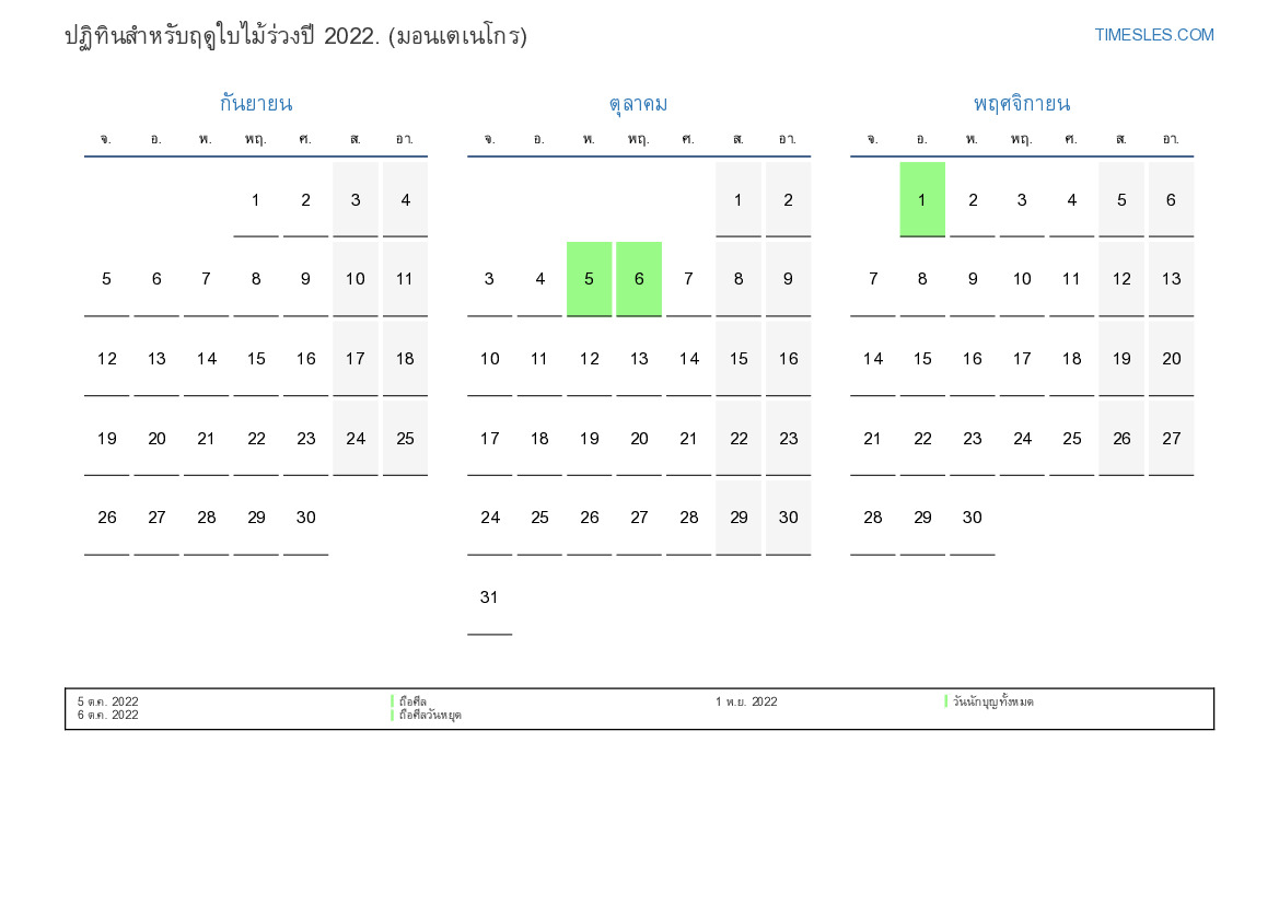 ปฏิทินสำหรับฤดูใบไม้ร่วงปี 2022 สำหรับมอนเตเนโกร