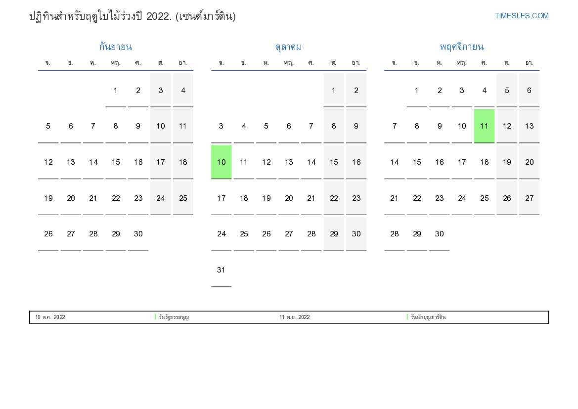 ดาวน์โหลดและพิมพ์ปฏิทิน PDF พร้อมวันหยุดและวันหยุดสุดสัปดาห์สำหรับฤดูใบไม้ร่วงปี 2022 สำหรับ Sint Maarten