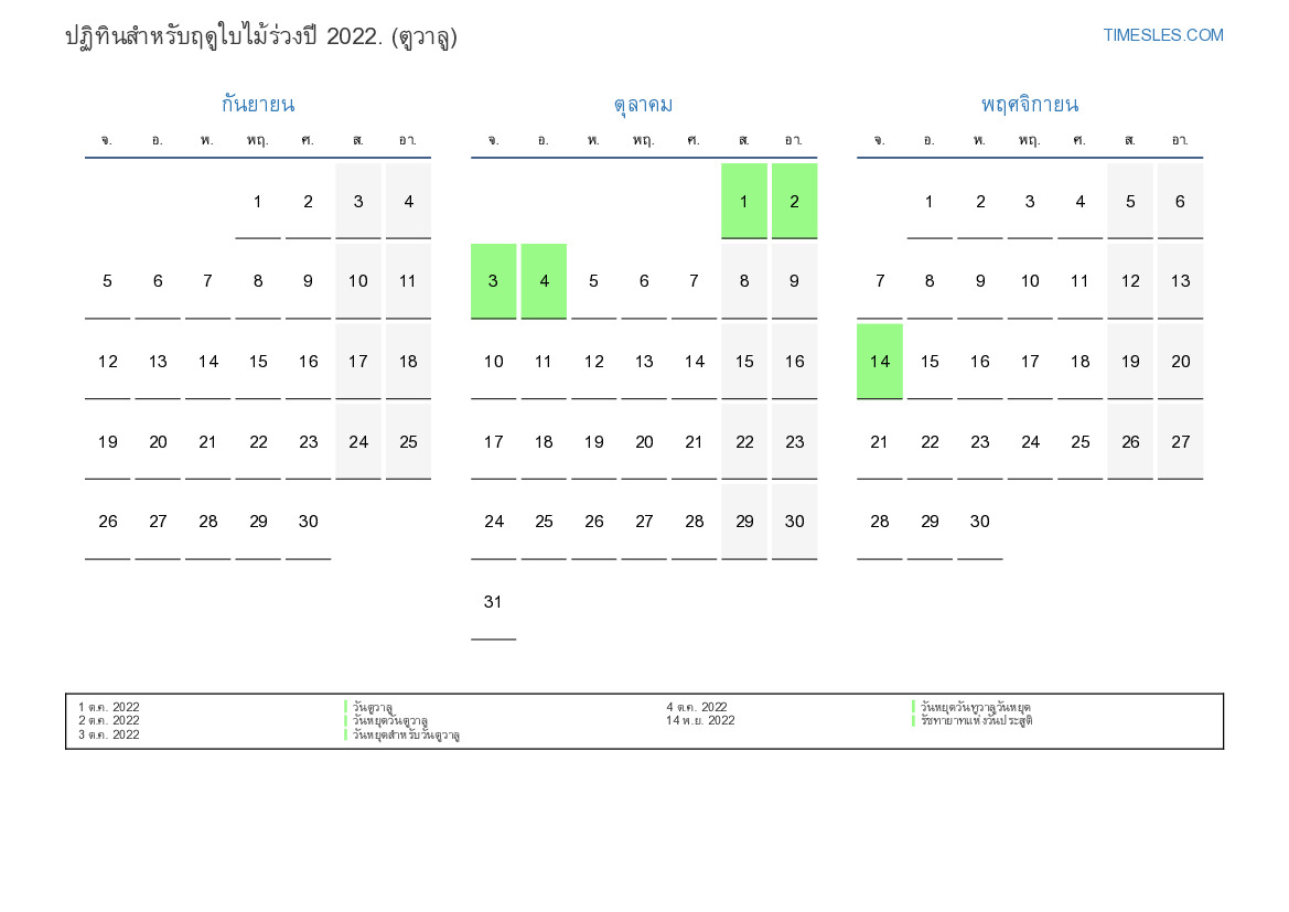 ปฏิทินวันหยุดและวันหยุดสุดสัปดาห์สำหรับฤดูใบไม้ร่วงปี 2022 สำหรับตูวาลู