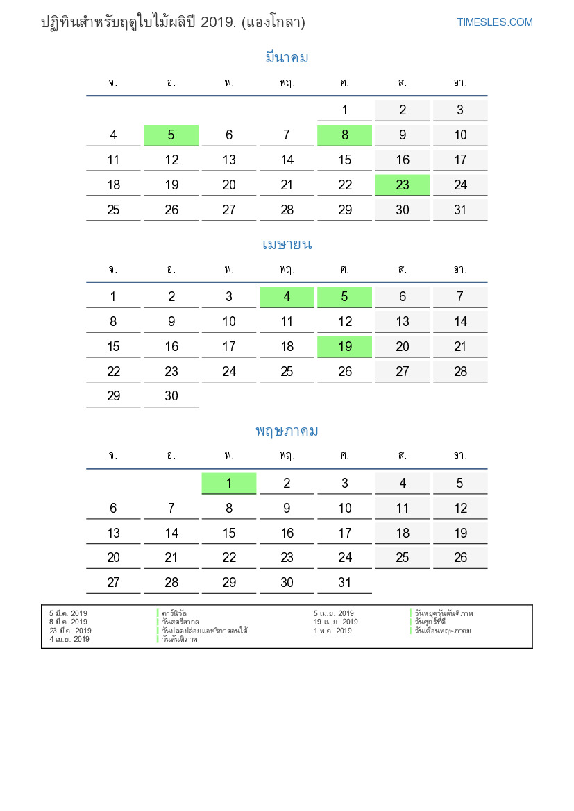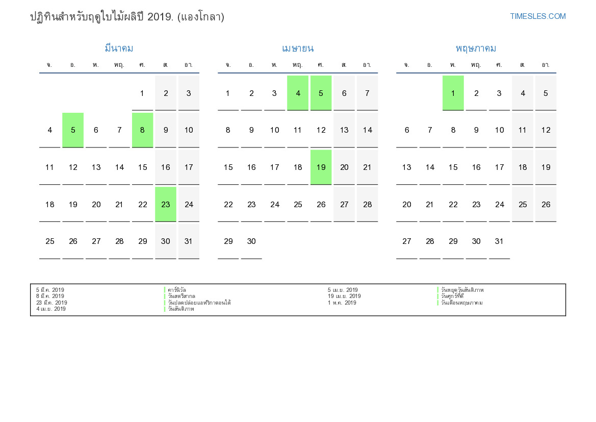 ปฏิทินสำหรับฤดูใบไม้ผลิปี 2019 สำหรับแองโกลา