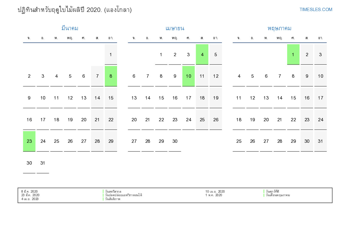 ปฏิทินสำหรับฤดูใบไม้ผลิปี 2020 สำหรับแองโกลา