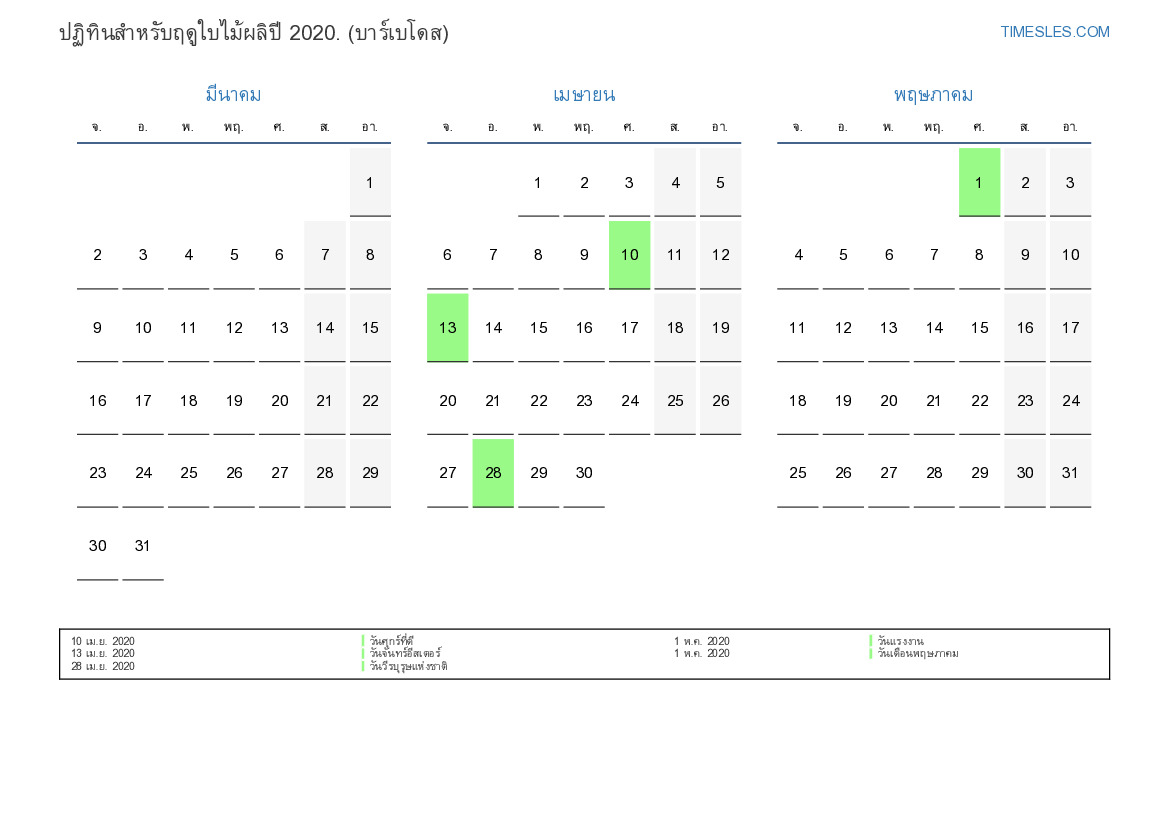 ปฏิทินสำหรับฤดูใบไม้ผลิปี 2020 สำหรับบาร์เบโดส