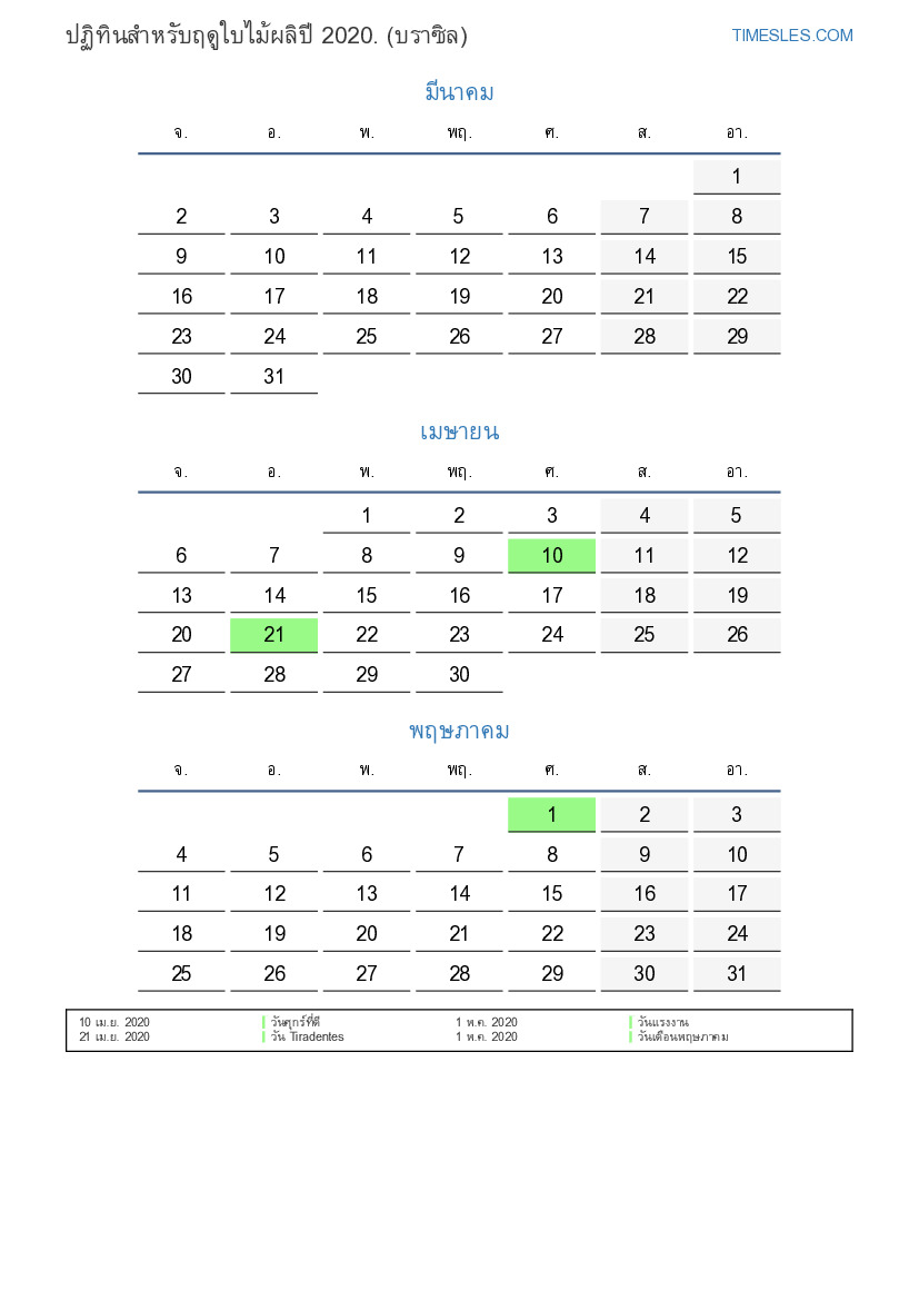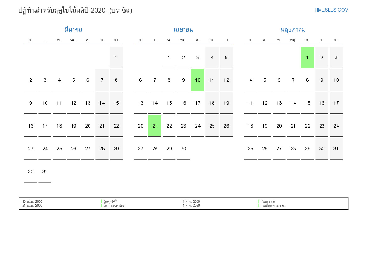 ปฏิทินสำหรับฤดูใบไม้ผลิปี 2020 สำหรับบราซิล