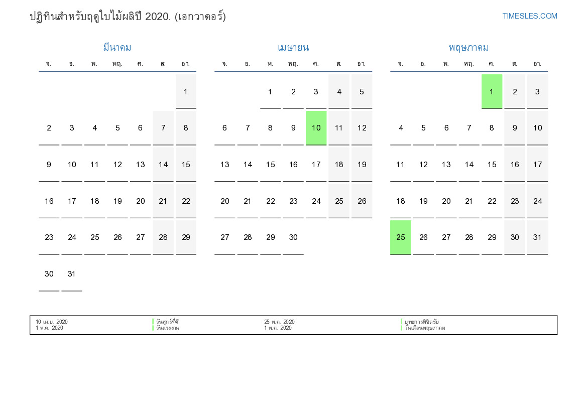 ปฏิทินสำหรับฤดูใบไม้ผลิปี 2020 สำหรับเอกวาดอร์