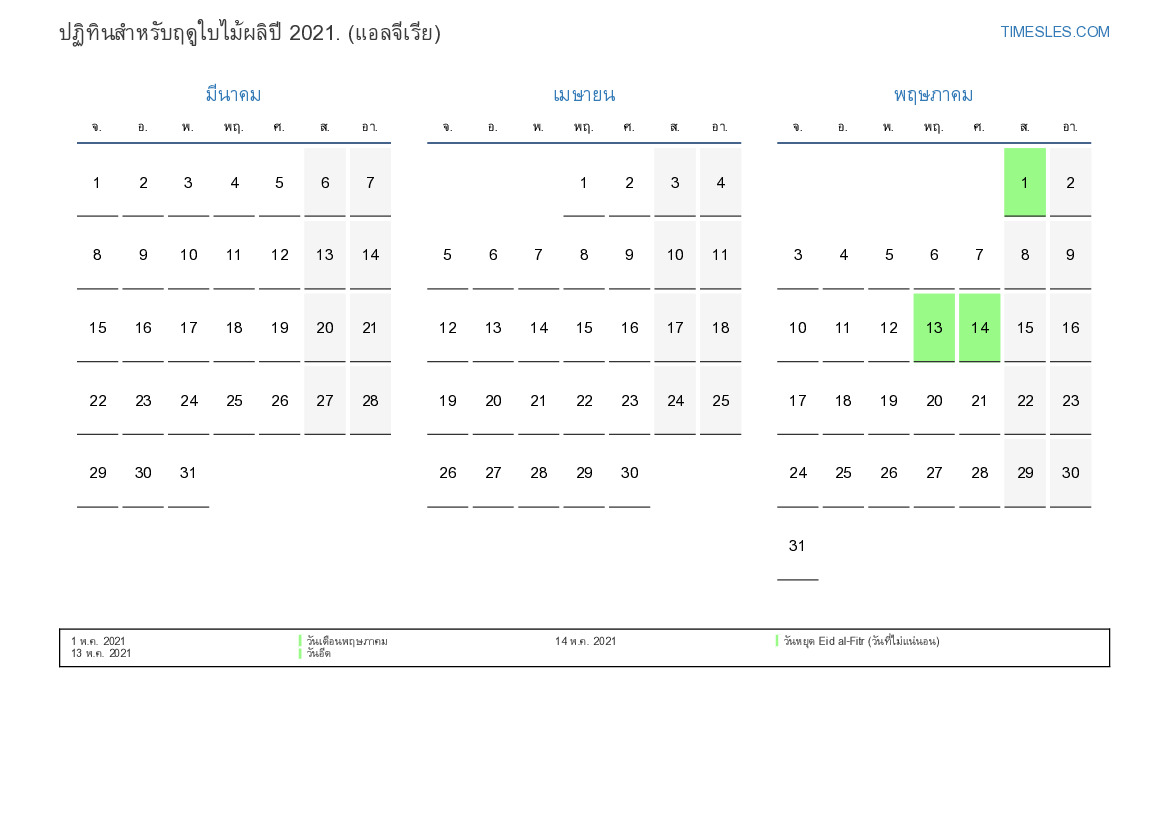 ปฏิทินสำหรับฤดูใบไม้ผลิปี 2021 สำหรับแอลจีเรีย