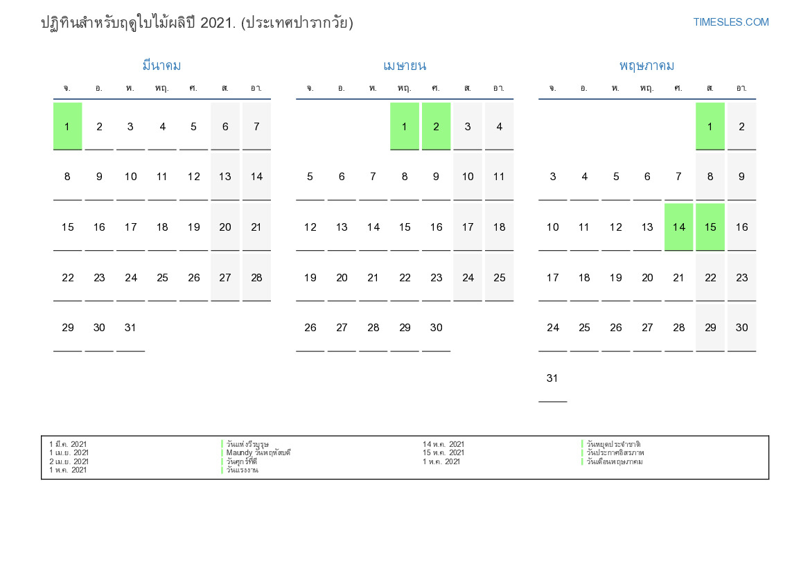 ดาวน์โหลดและพิมพ์ปฏิทิน PDF พร้อมวันหยุดและวันหยุดสุดสัปดาห์สำหรับฤดูใบไม้ผลิปี 2021 สำหรับปารากวัย