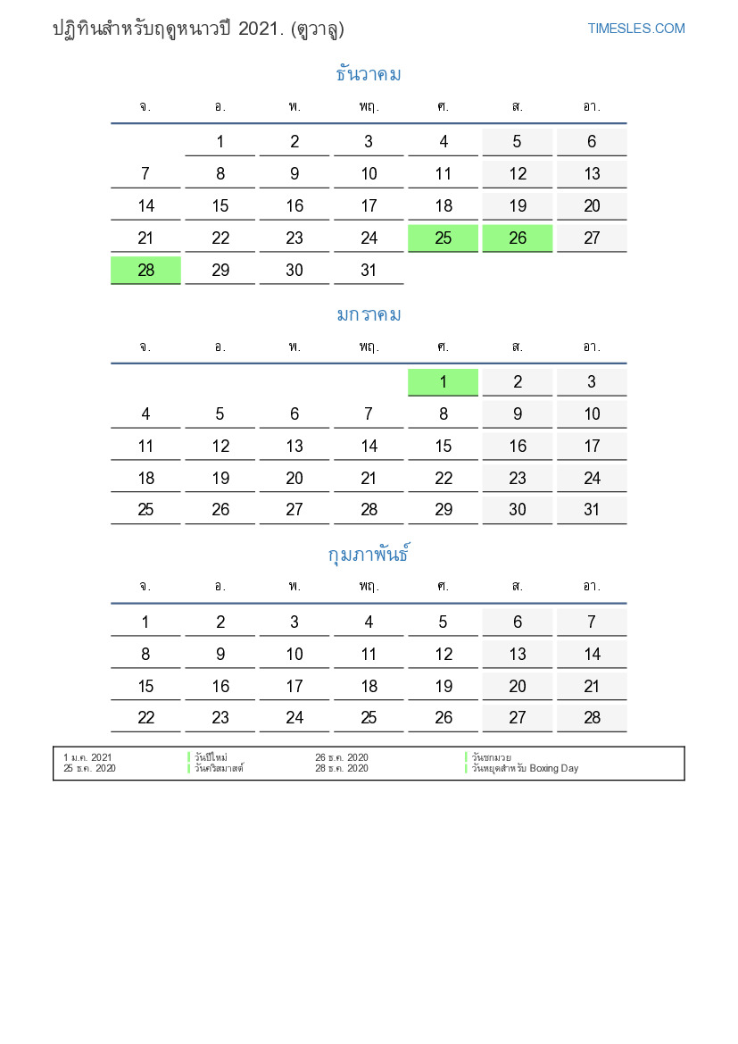 ปฏิทินแนวตั้งโดยไม่มีวันหยุด