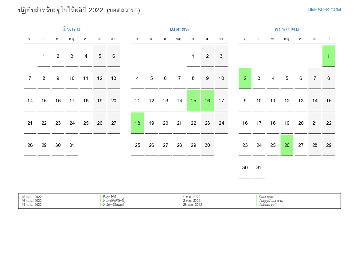 ดาวน์โหลดและพิมพ์ปฏิทิน PDF พร้อมวันหยุดและวันหยุดสุดสัปดาห์สำหรับฤดูใบไม้ผลิปี 2022 สำหรับบอตสวานา