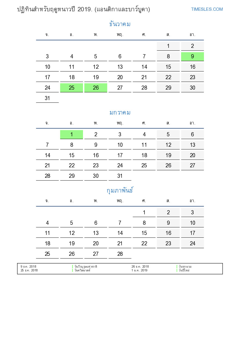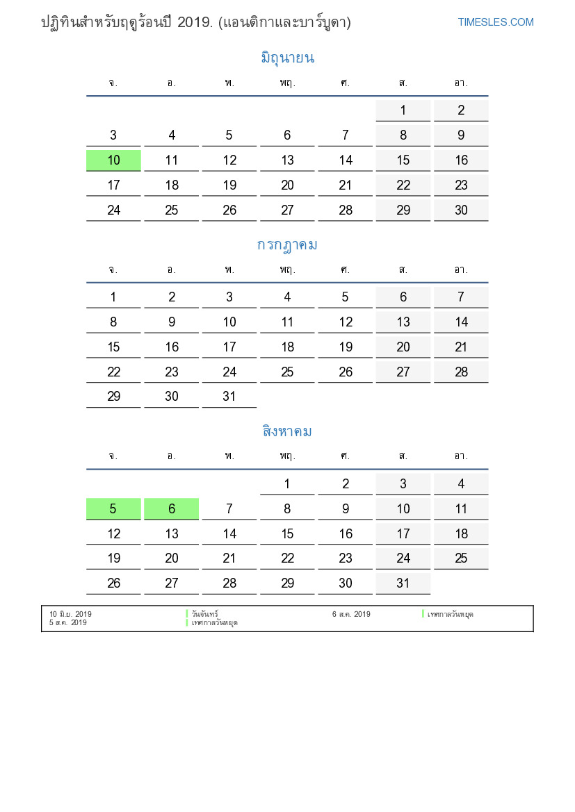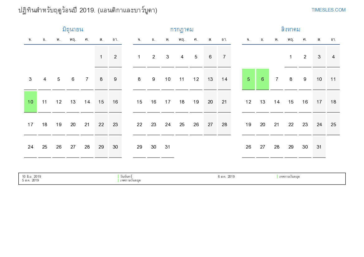 ปฏิทินสำหรับฤดูร้อนปี 2019 สำหรับแอนติกาและบาร์บูดา