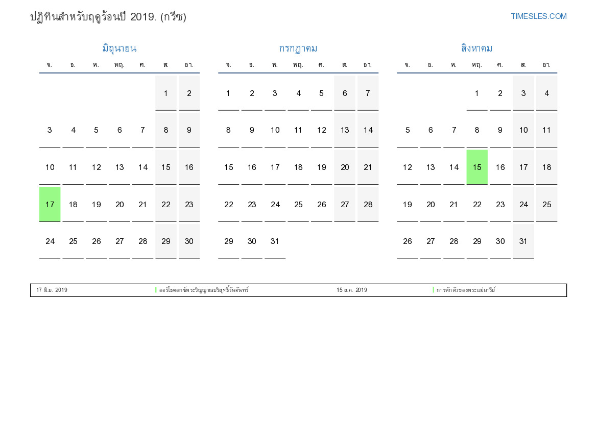 ดาวน์โหลดและพิมพ์ปฏิทิน PDF พร้อมวันหยุดและวันหยุดสุดสัปดาห์สำหรับฤดูร้อนปี 2019 สำหรับกรีซ