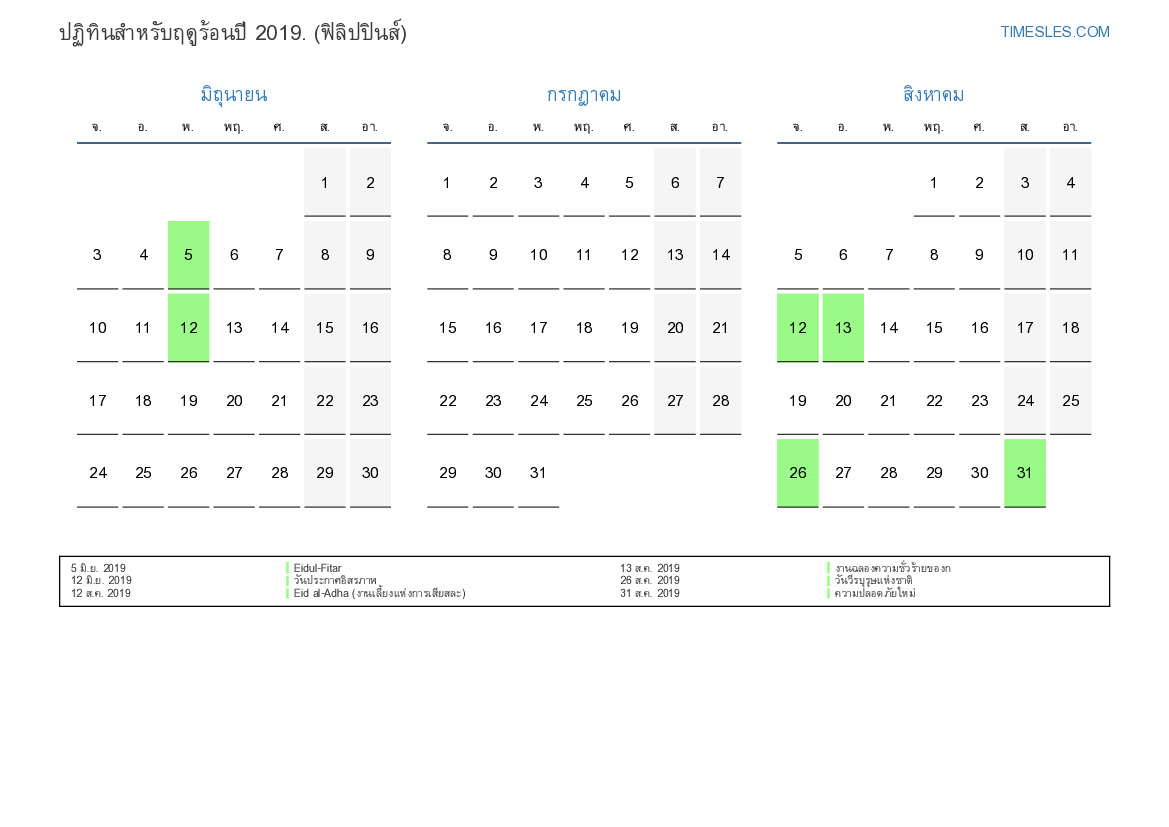 ปฏิทินสำหรับฤดูร้อนปี 2019 สำหรับฟิลิปปินส์
