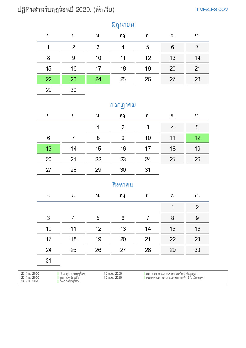 22 มิ.ย. 2020 วันหยุดกลางฤดูร้อน