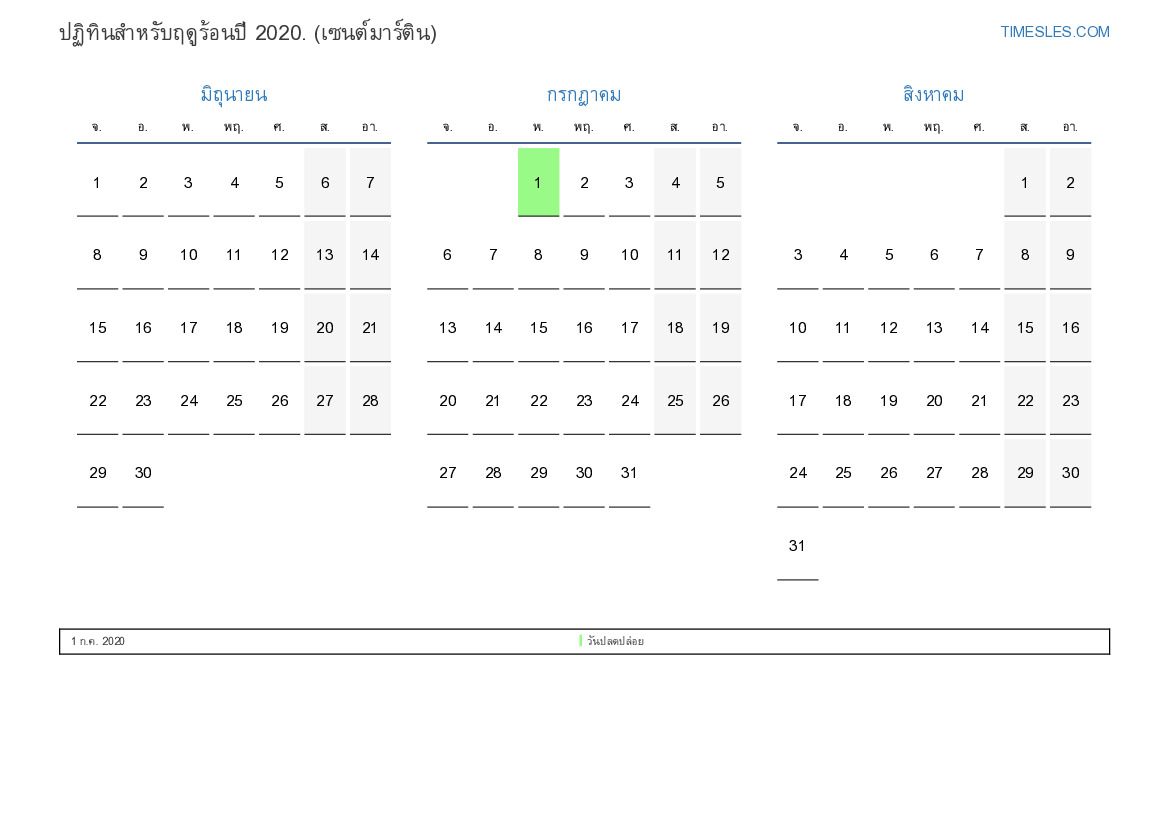 ดาวน์โหลดและพิมพ์ปฏิทิน PDF พร้อมวันหยุดและวันหยุดสุดสัปดาห์สำหรับฤดูร้อนปี 2020 สำหรับ Sint Maarten