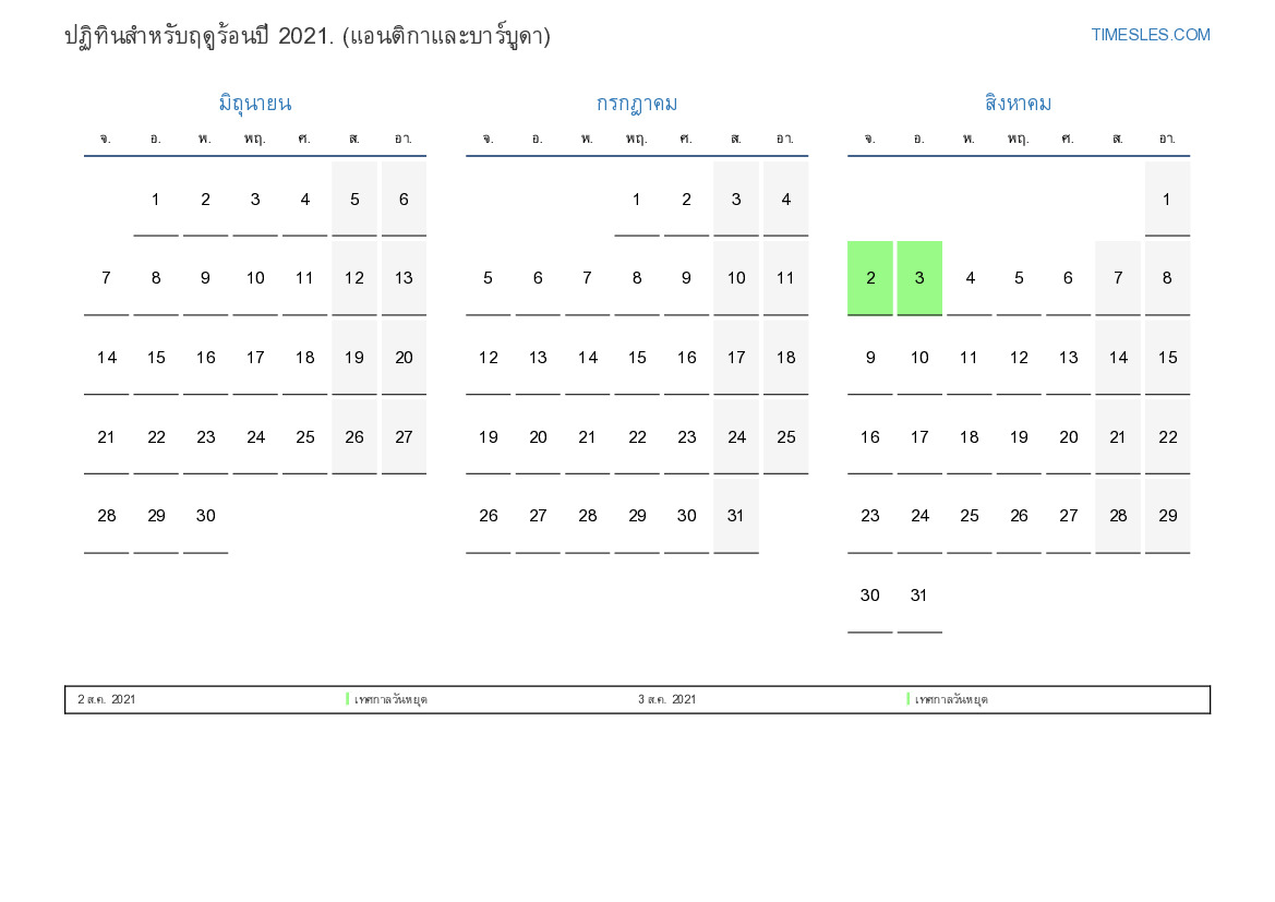 ปฏิทินสำหรับฤดูร้อนปี 2021 สำหรับแอนติกาและบาร์บูดา