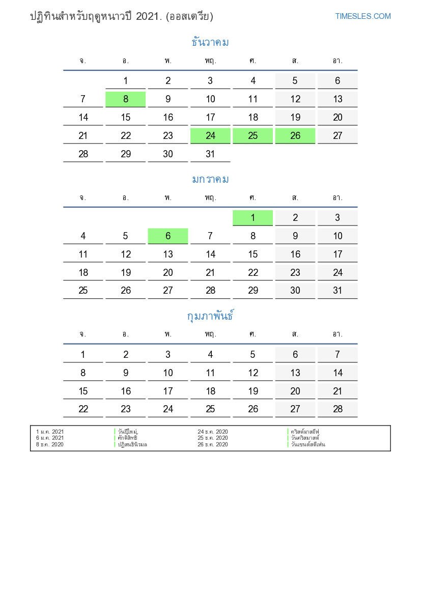 ปฏิทินแนวตั้งสำหรับปีตามฤดูกาลพร้อมวันหยุด