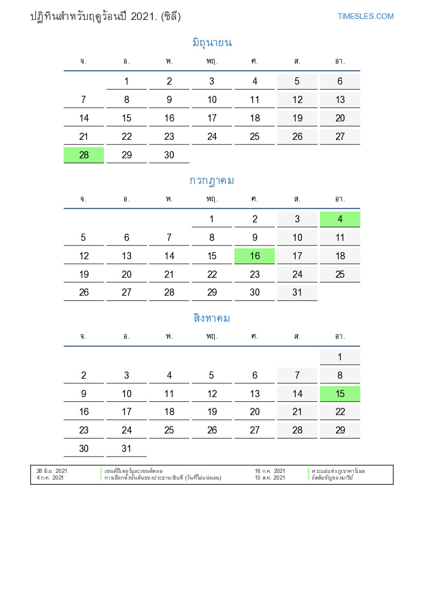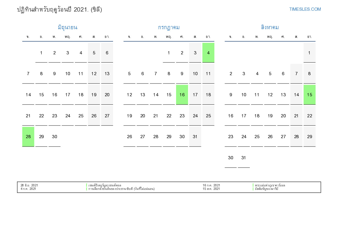 ปฏิทินสำหรับฤดูร้อนปี 2021 สำหรับชิลี
