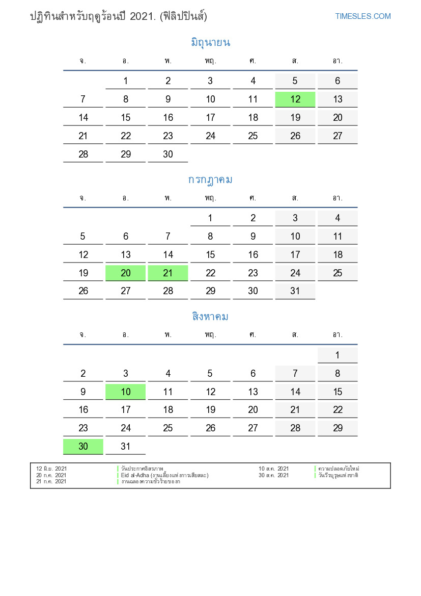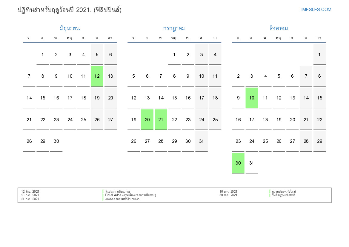 ปฏิทินสำหรับฤดูร้อนปี 2021 สำหรับฟิลิปปินส์