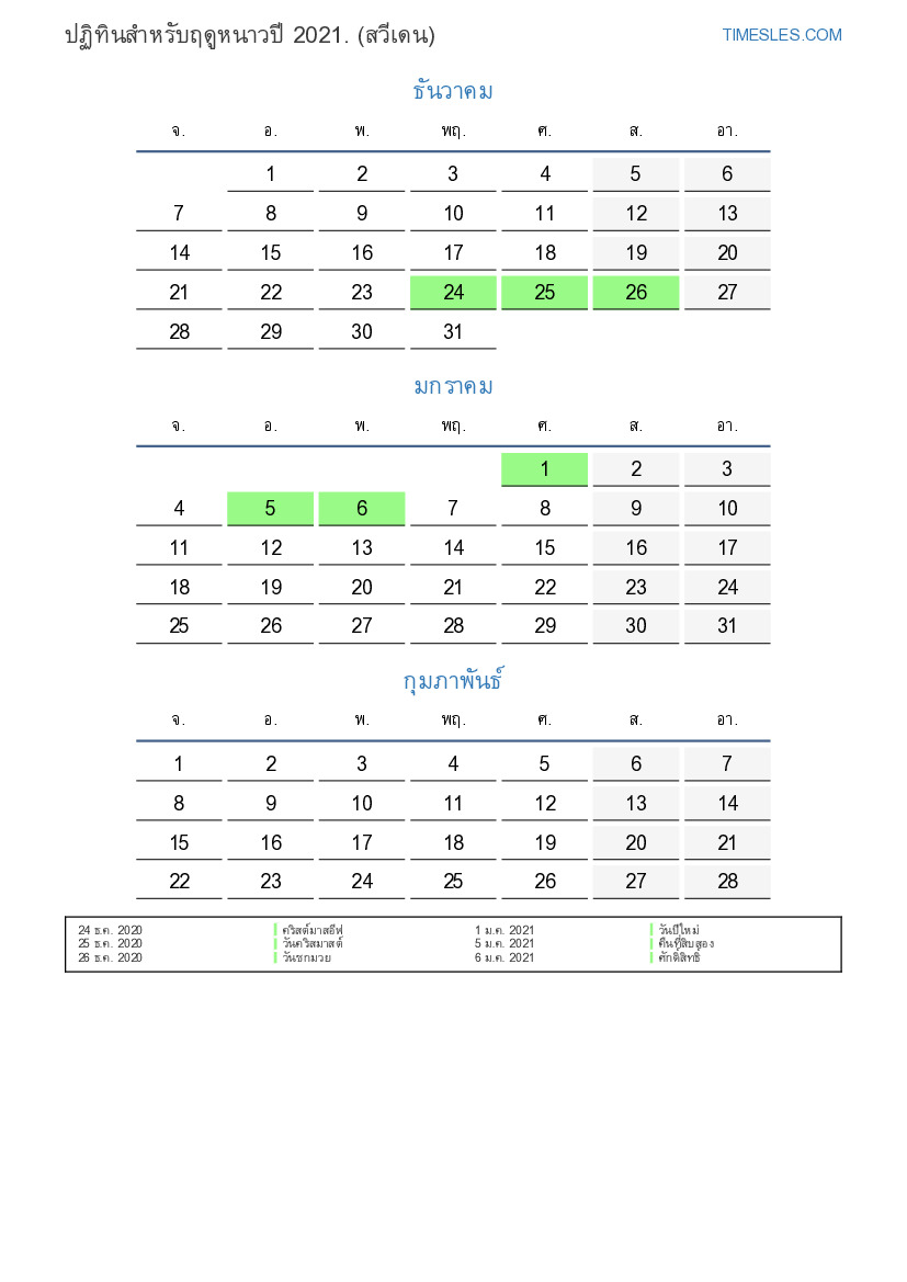 ปฏิทินวันหยุดและวันหยุดสุดสัปดาห์สำหรับฤดูร้อนปี 2021 สำหรับสวีเดน