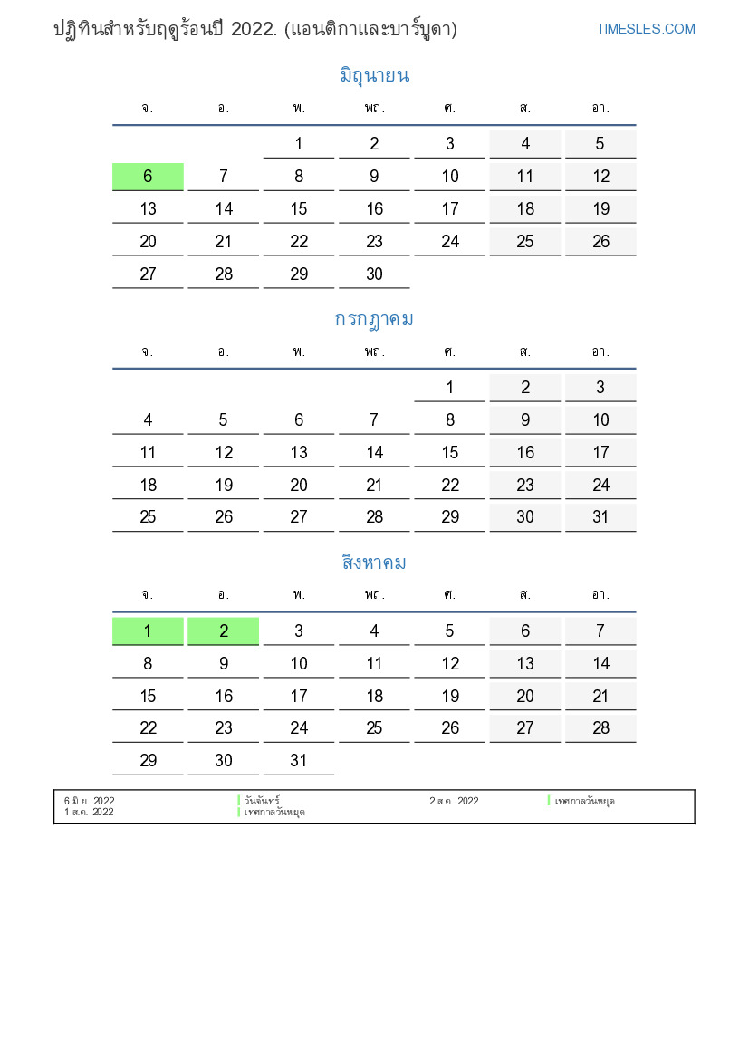 ดาวน์โหลดและพิมพ์ปฏิทิน PDF พร้อมวันหยุดและวันหยุดสุดสัปดาห์สำหรับฤดูร้อนปี 2022 สำหรับแอนติกาและบาร์บูดา