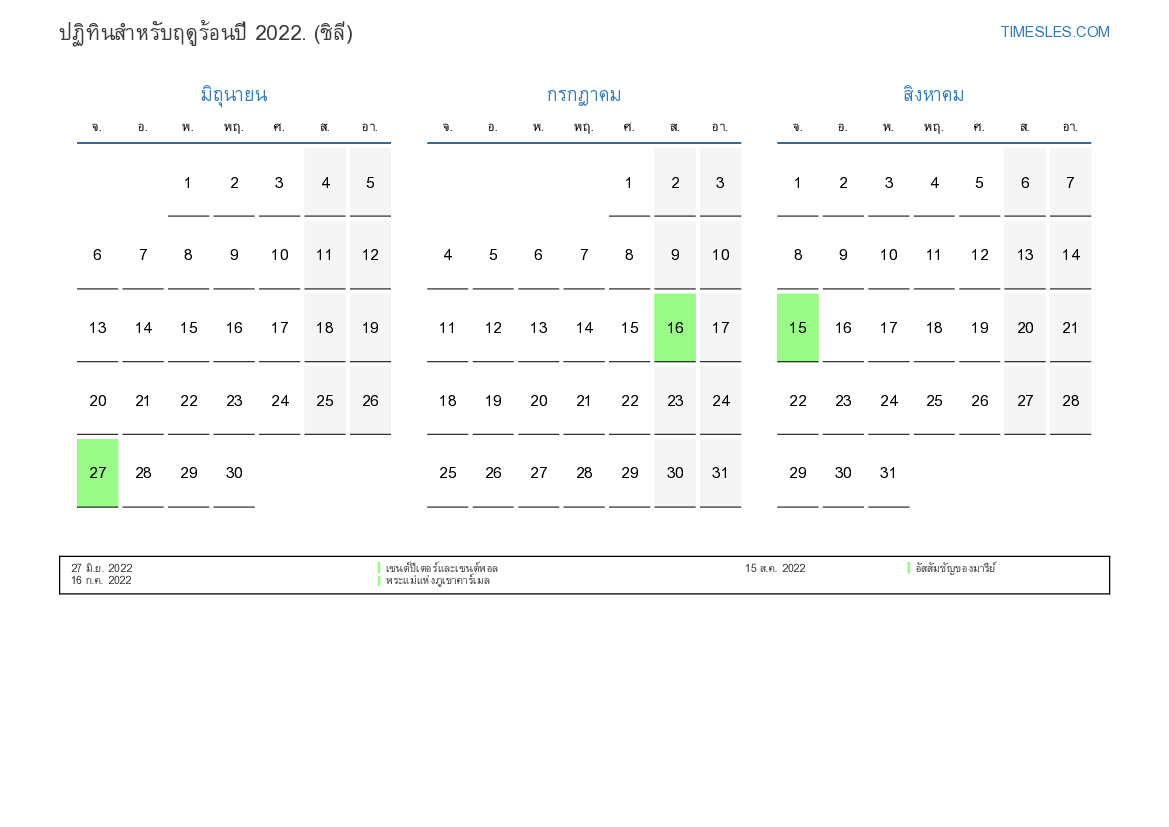 ปฏิทินสำหรับฤดูร้อนปี 2022 สำหรับชิลี