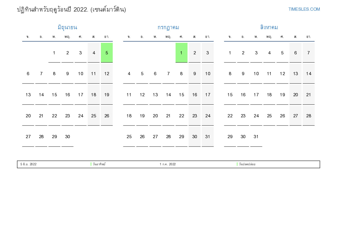 ดาวน์โหลดและพิมพ์ปฏิทิน PDF พร้อมวันหยุดและวันหยุดสุดสัปดาห์สำหรับฤดูร้อนปี 2022 สำหรับ Sint Maarten