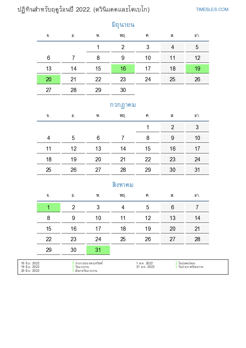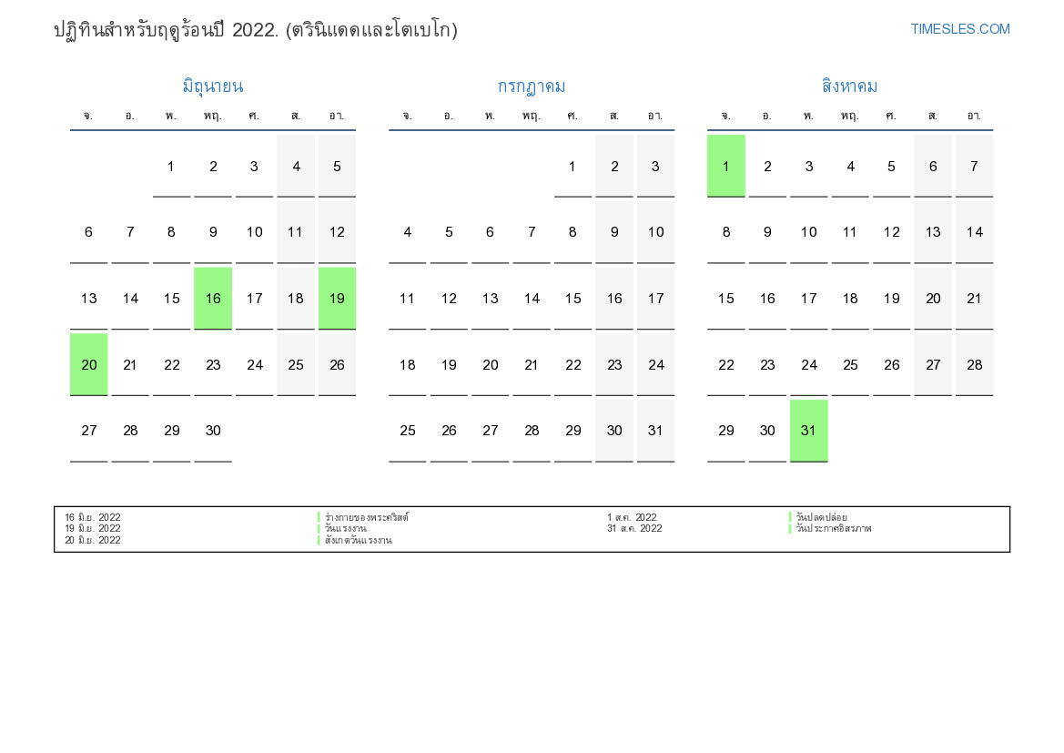 ปฏิทินสำหรับฤดูร้อนปี 2022 สำหรับตรินิแดดและโตเบโก
