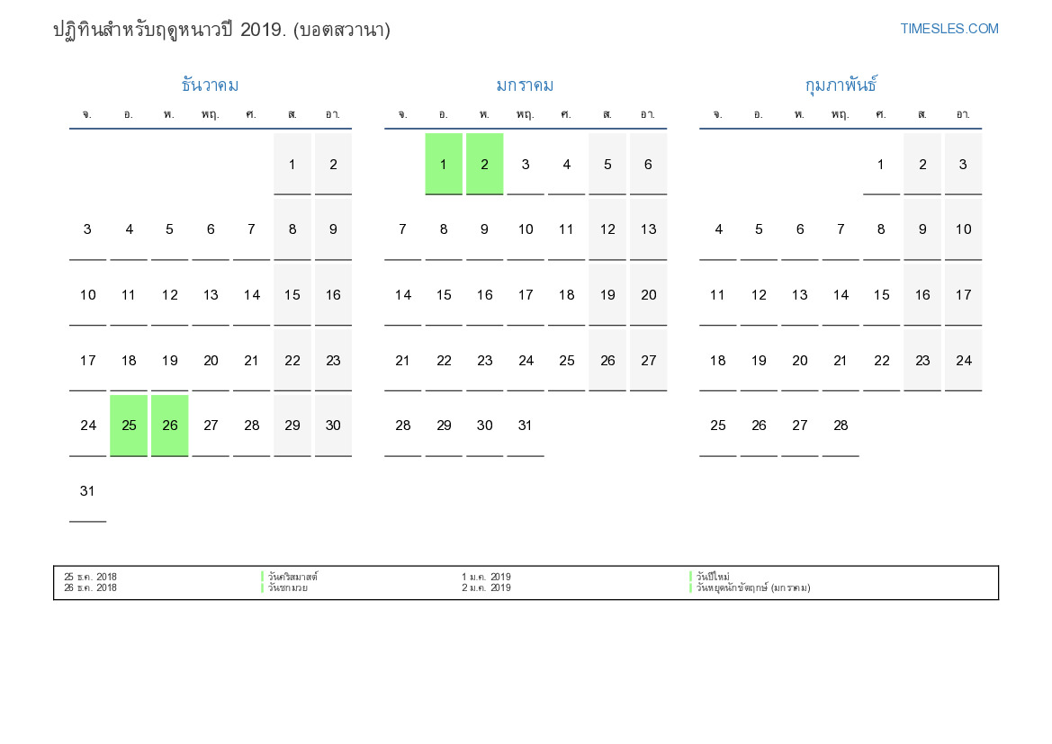 2 ม.ค. 2019 วันหยุดนักขัตฤกษ์ (มกราคม)
