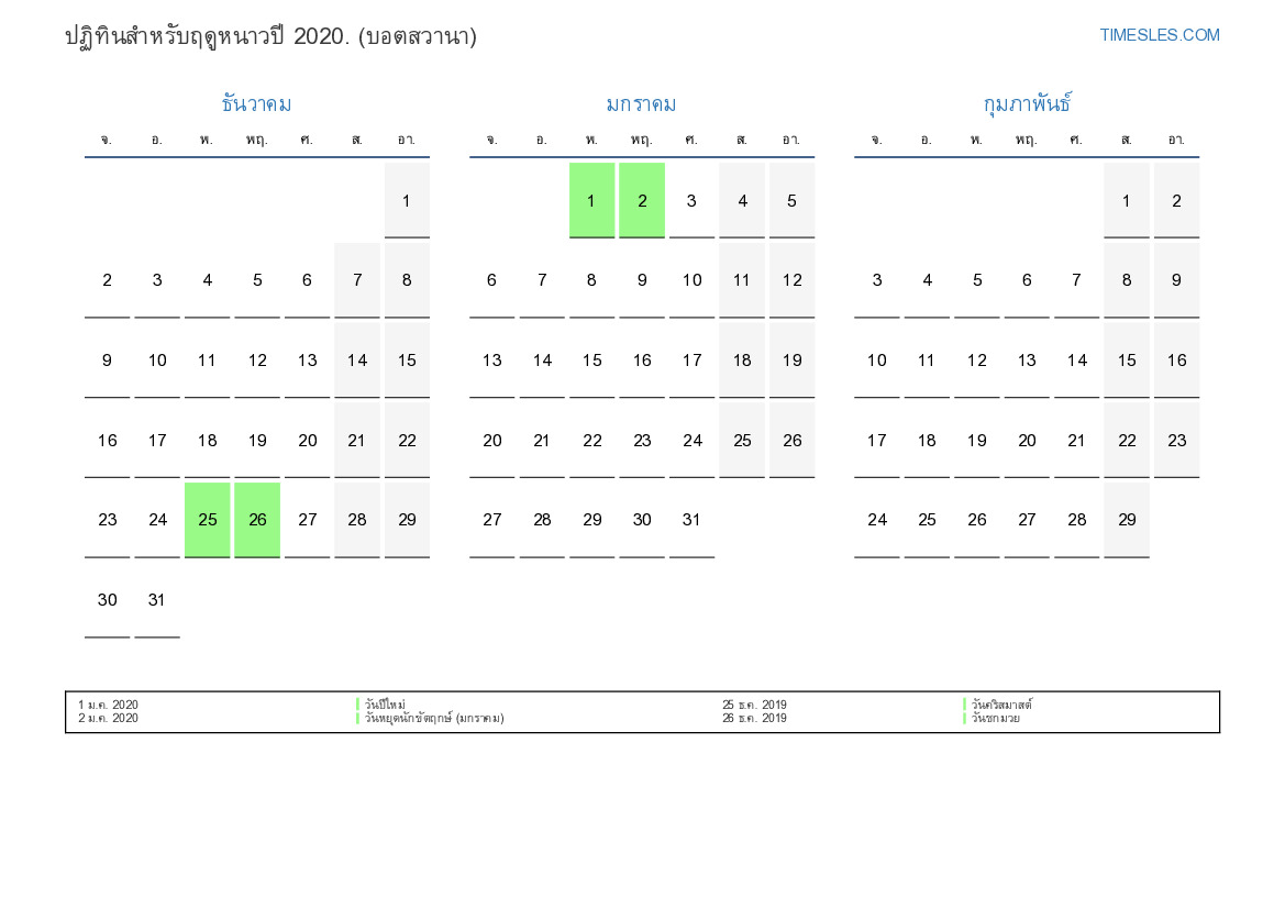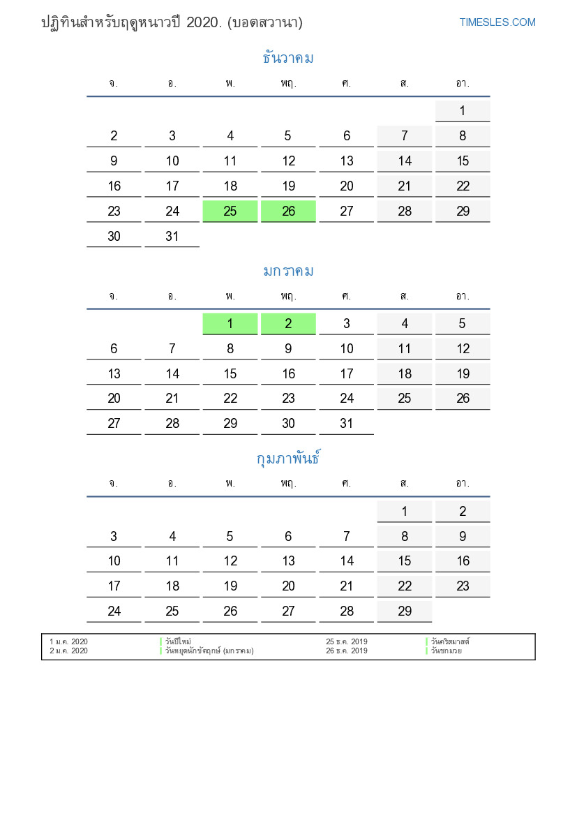 2 ม.ค. 2020 วันหยุดนักขัตฤกษ์ (มกราคม)