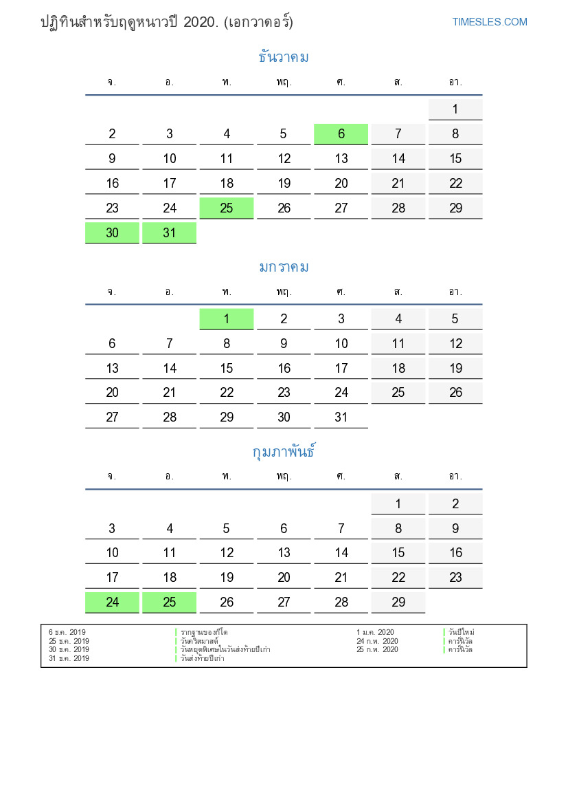 ดาวน์โหลดและพิมพ์ปฏิทิน PDF พร้อมวันหยุดและวันหยุดสุดสัปดาห์สำหรับฤดูหนาวปี 2020 สำหรับเอกวาดอร์