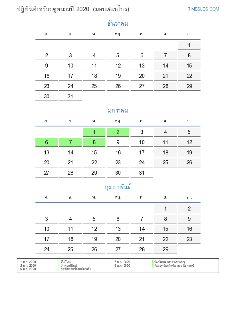 ดาวน์โหลดและพิมพ์ปฏิทิน PDF พร้อมวันหยุดและวันหยุดสุดสัปดาห์สำหรับฤดูหนาวปี 2020 สำหรับมอนเตเนโกร