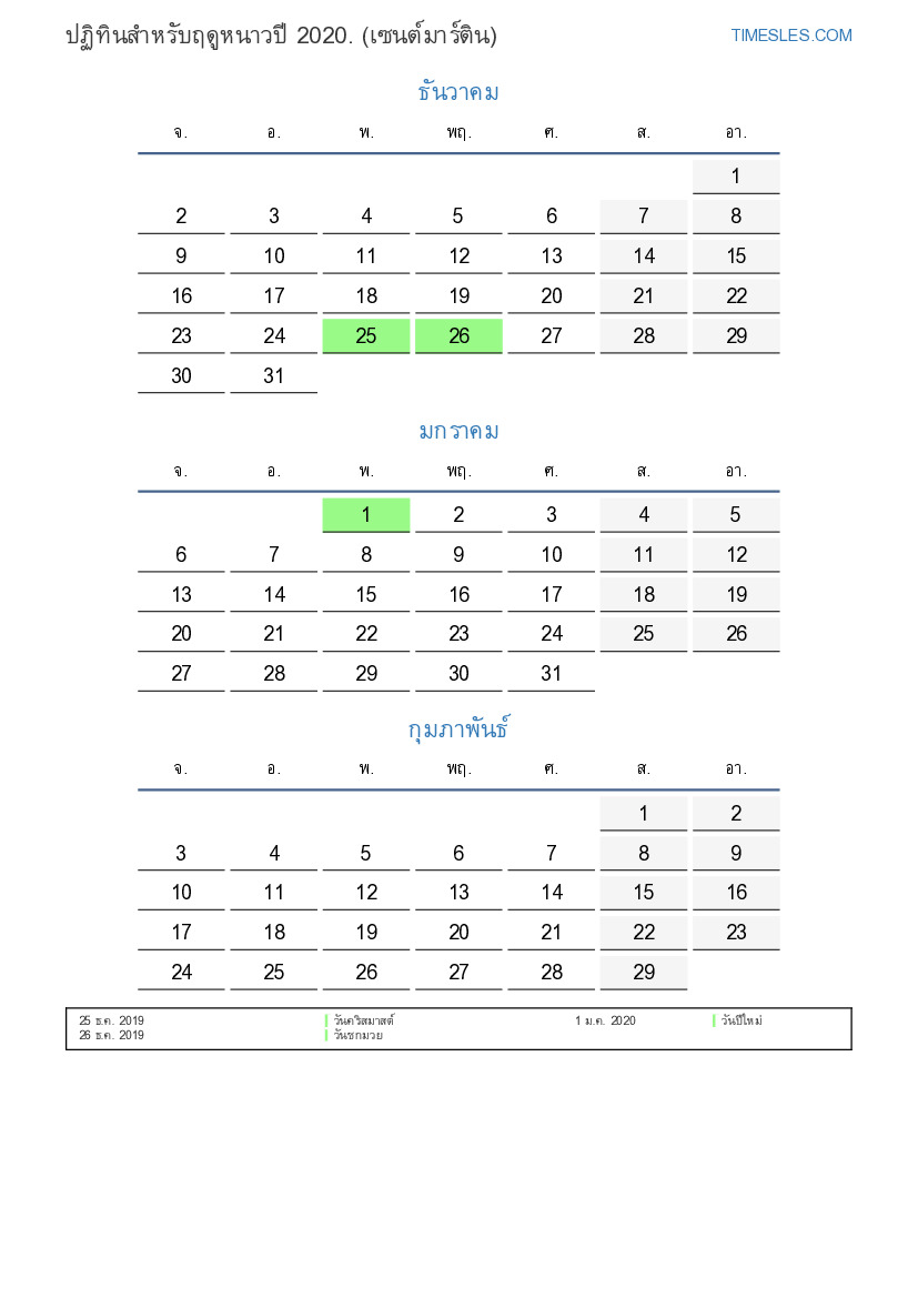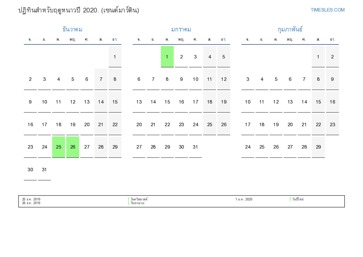 ดาวน์โหลดและพิมพ์ปฏิทิน PDF พร้อมวันหยุดและวันหยุดสุดสัปดาห์สำหรับฤดูหนาวปี 2020 สำหรับ Sint Maarten