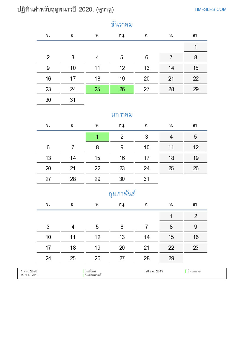 ดาวน์โหลดและพิมพ์ปฏิทิน PDF พร้อมวันหยุดและวันหยุดสุดสัปดาห์สำหรับฤดูหนาวปี 2020 สำหรับตูวาลู