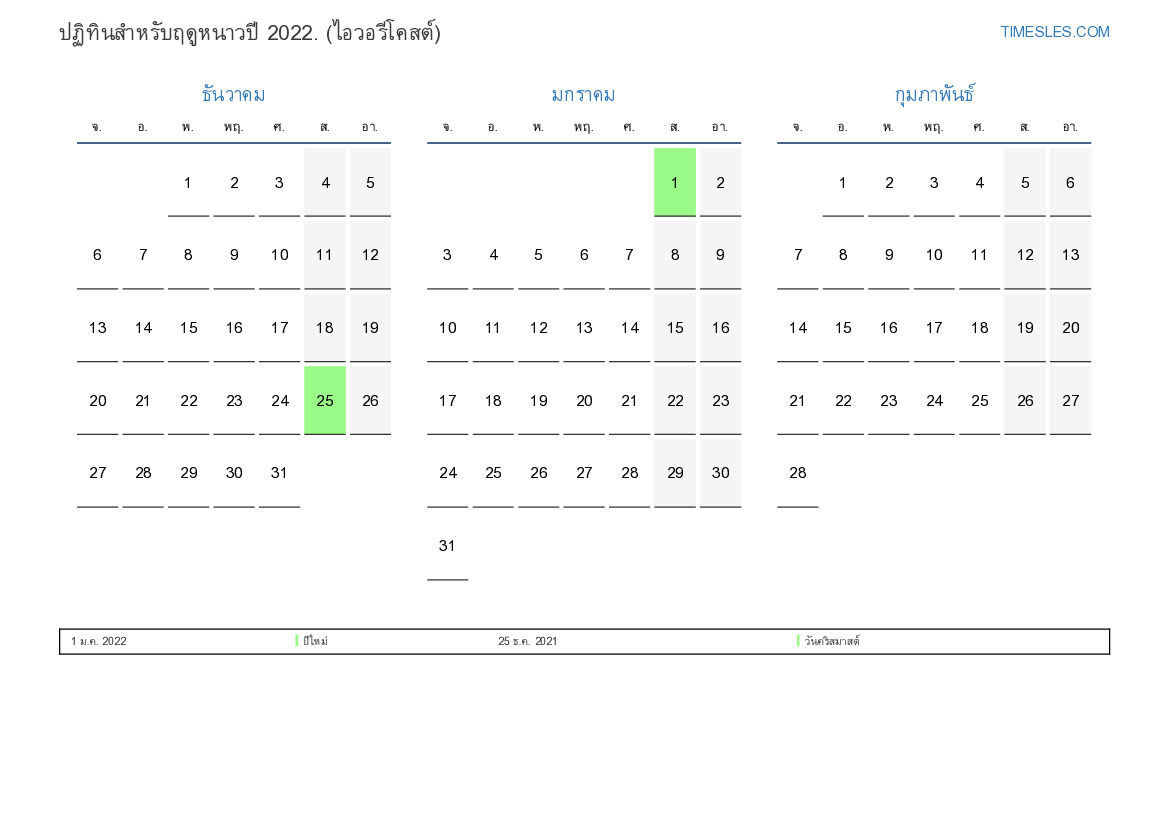 ดาวน์โหลดและพิมพ์ปฏิทิน PDF พร้อมวันหยุดและวันหยุดสุดสัปดาห์สำหรับฤดูหนาวปี 2022 สำหรับโกตดิวัวร์