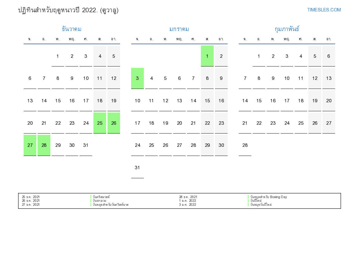 ดาวน์โหลดและพิมพ์ปฏิทิน PDF พร้อมวันหยุดและวันหยุดสุดสัปดาห์สำหรับฤดูหนาวปี 2022 สำหรับตูวาลู