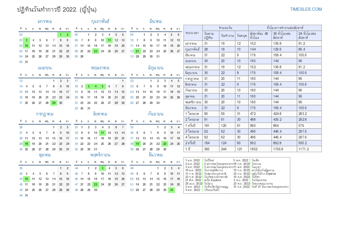 วันทำการในเดือนสิงหาคม 2022 สำหรับญี่ปุ่น
