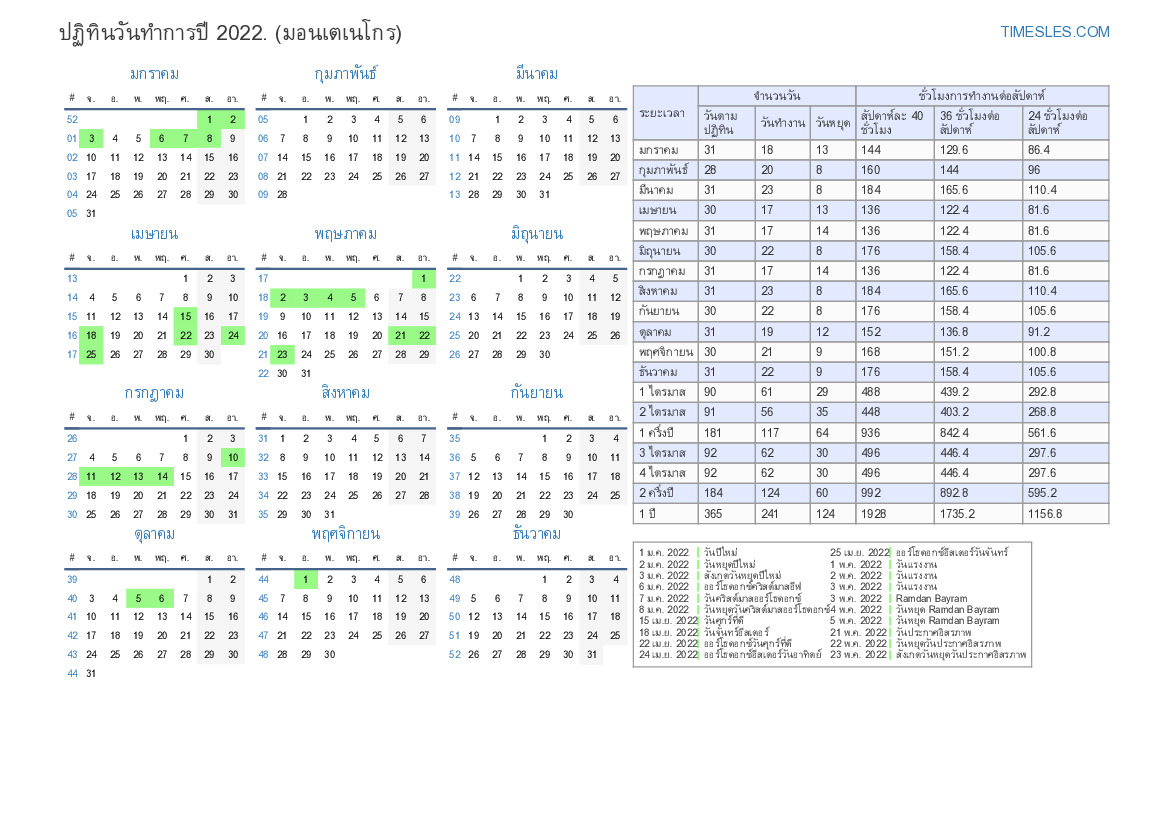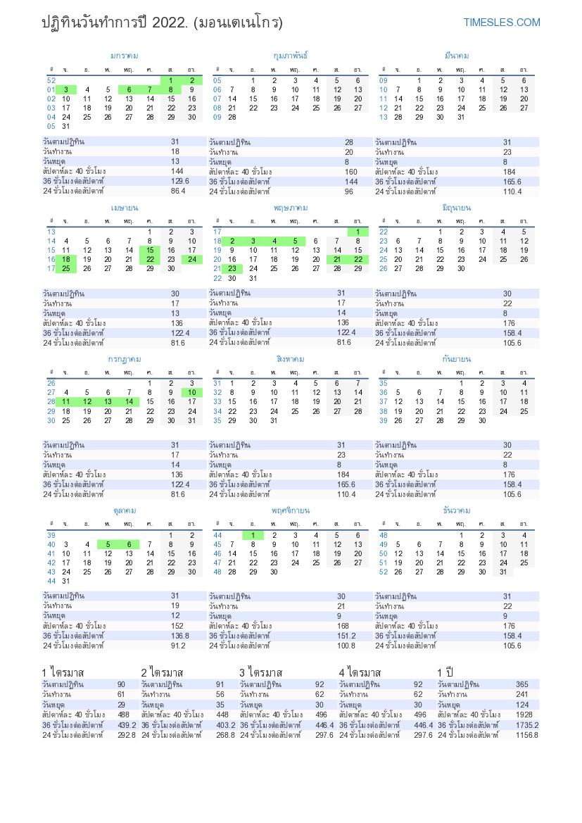 | 36 ชั่วโมงต่อสัปดาห์ | 1735.2 |