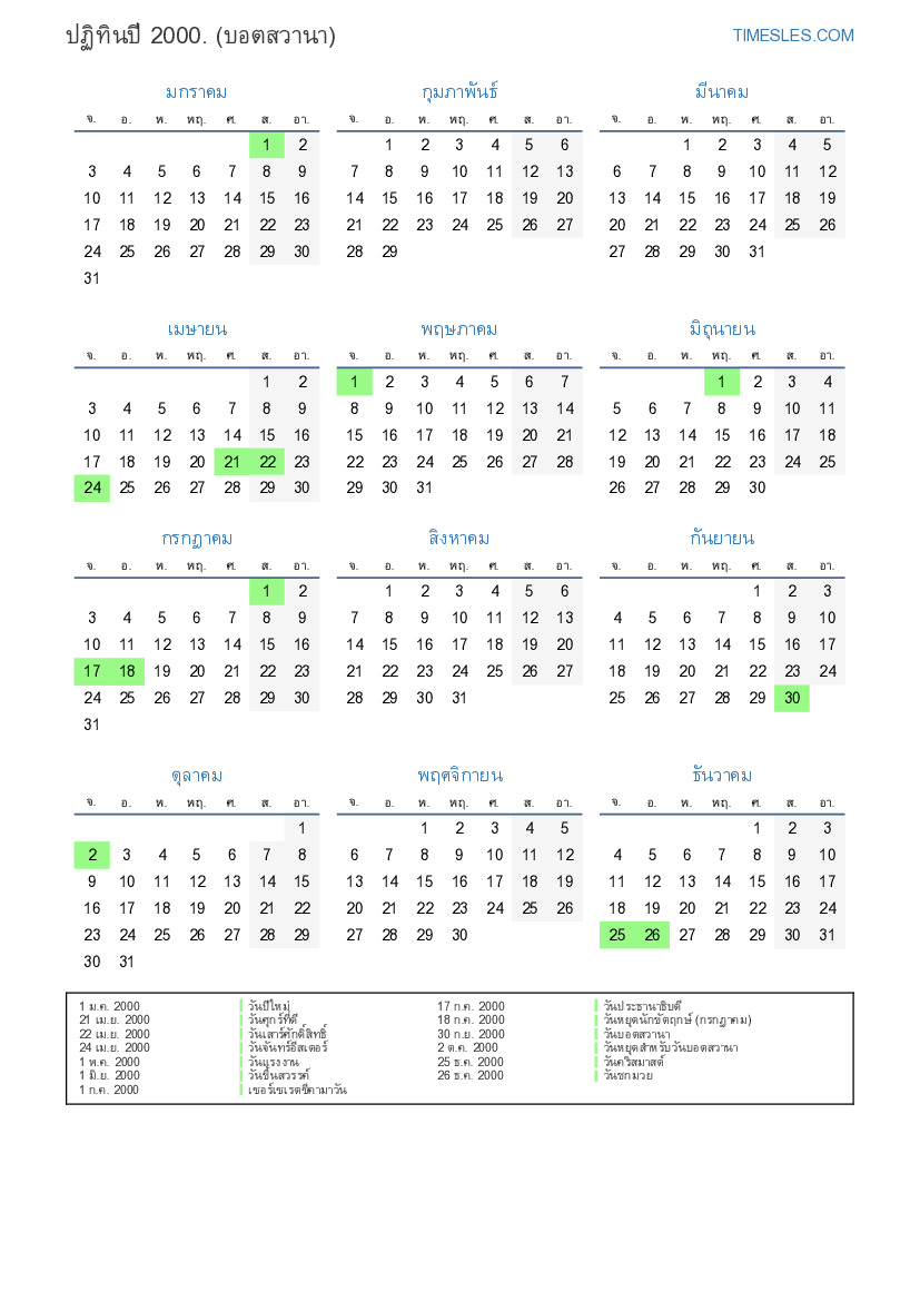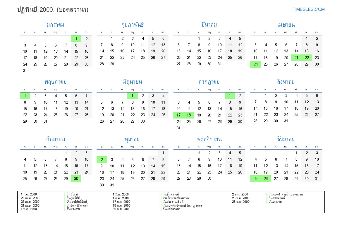 18 ก.ค. 2000 วันหยุดนักขัตฤกษ์ (กรกฎาคม)