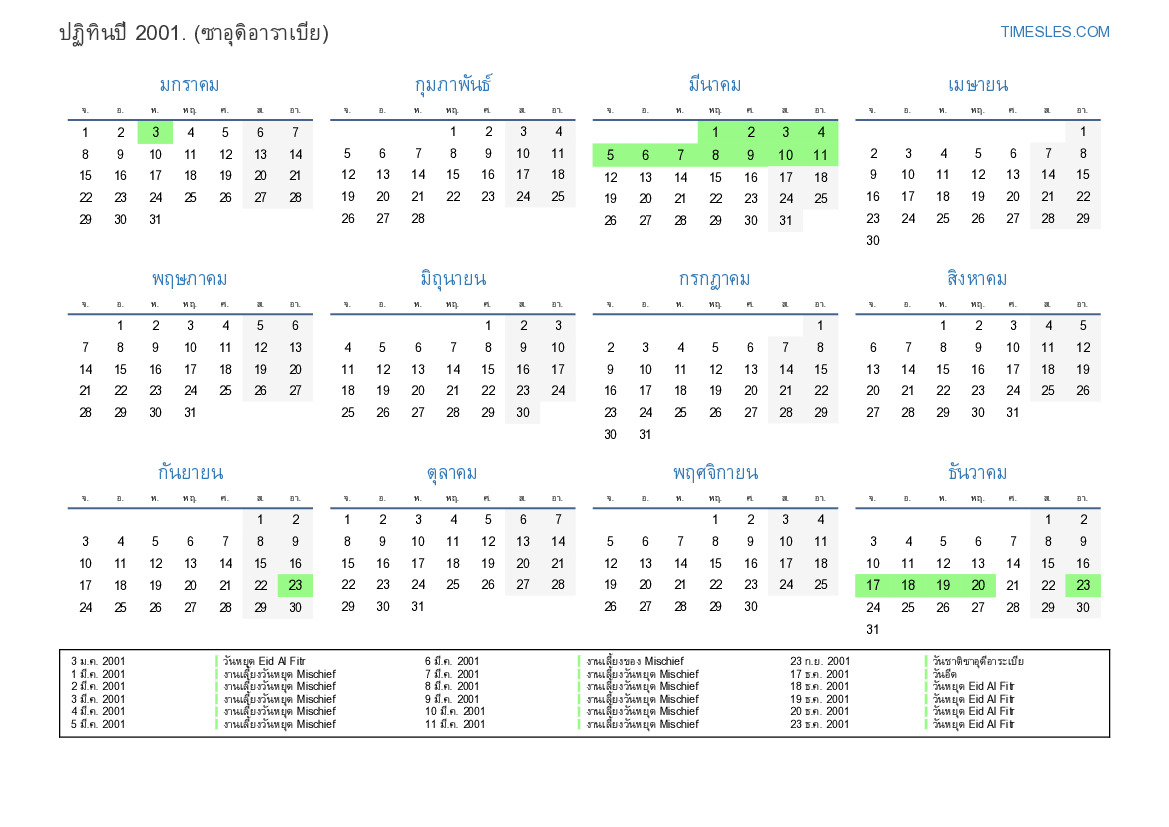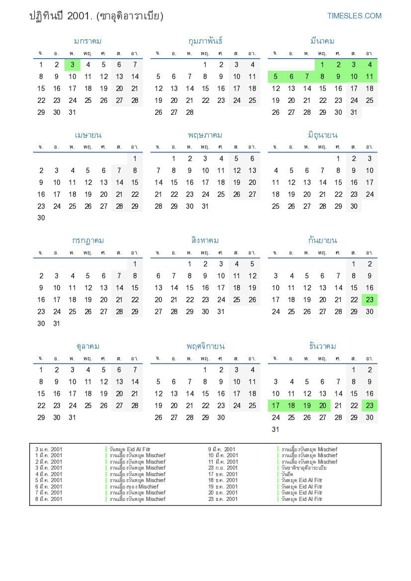 1 ม.ค. 2001 วันหยุด Eid al-Fitr (เฉพาะภาครัฐ)