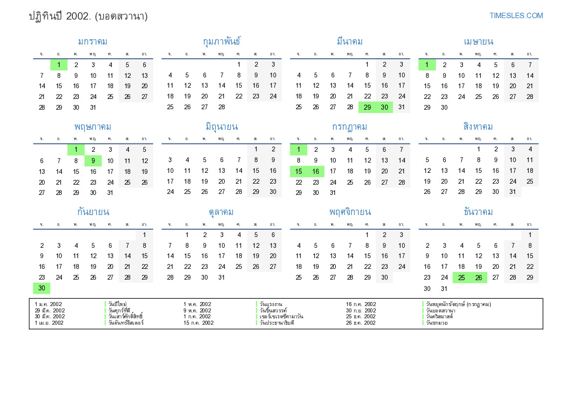 16 ก.ค. 2002 วันหยุดนักขัตฤกษ์ (กรกฎาคม)