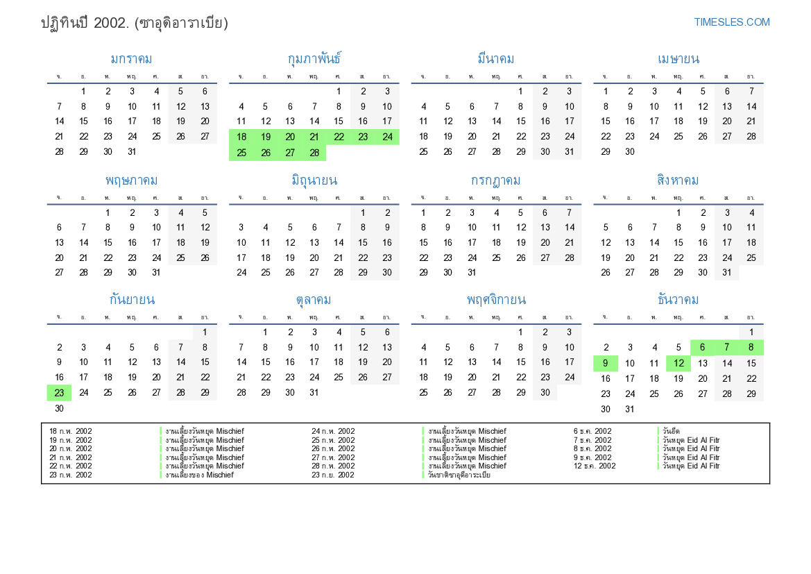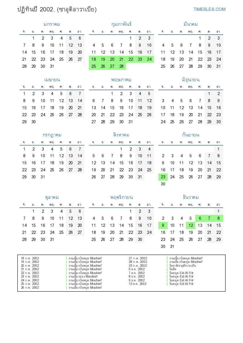 11 ธ.ค. 2002 วันหยุด Eid al-Fitr (เฉพาะภาครัฐ)