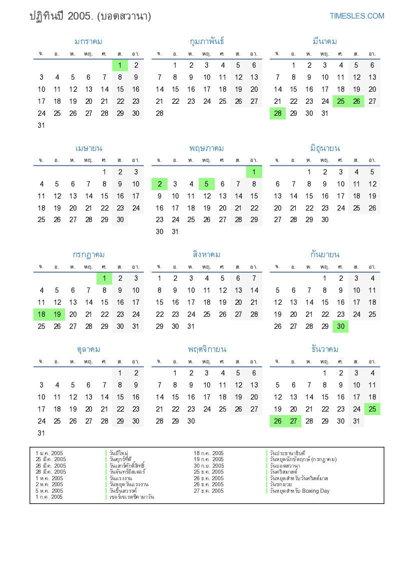 19 ก.ค. 2005 วันหยุดนักขัตฤกษ์ (กรกฎาคม)