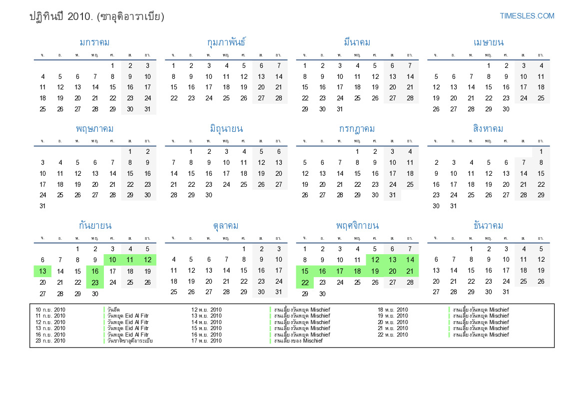 15 ก.ย. 2010 วันหยุด Eid al-Fitr (เฉพาะภาครัฐ)